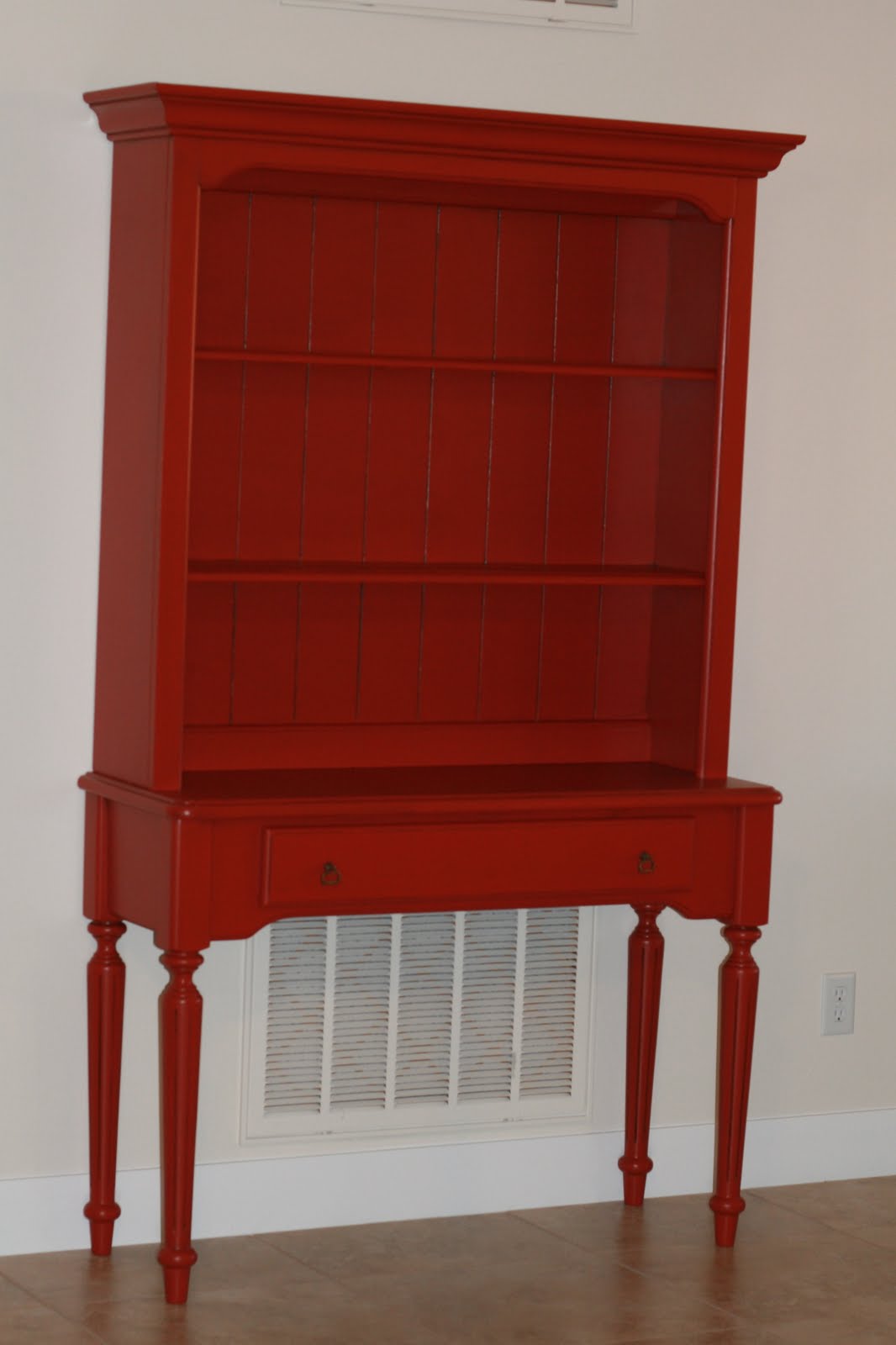 So this green ( I really didn't like the color... it was a little outdated) hutch transformed into this red hutch!